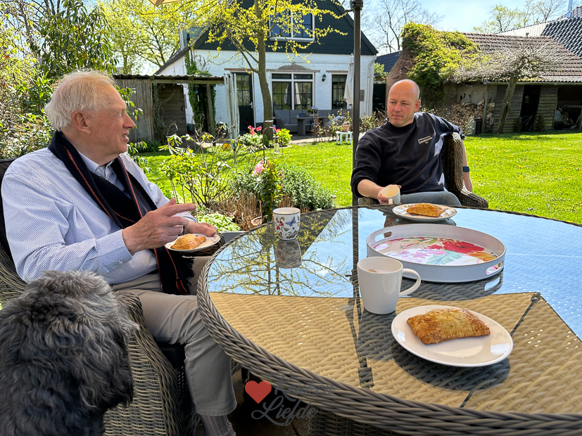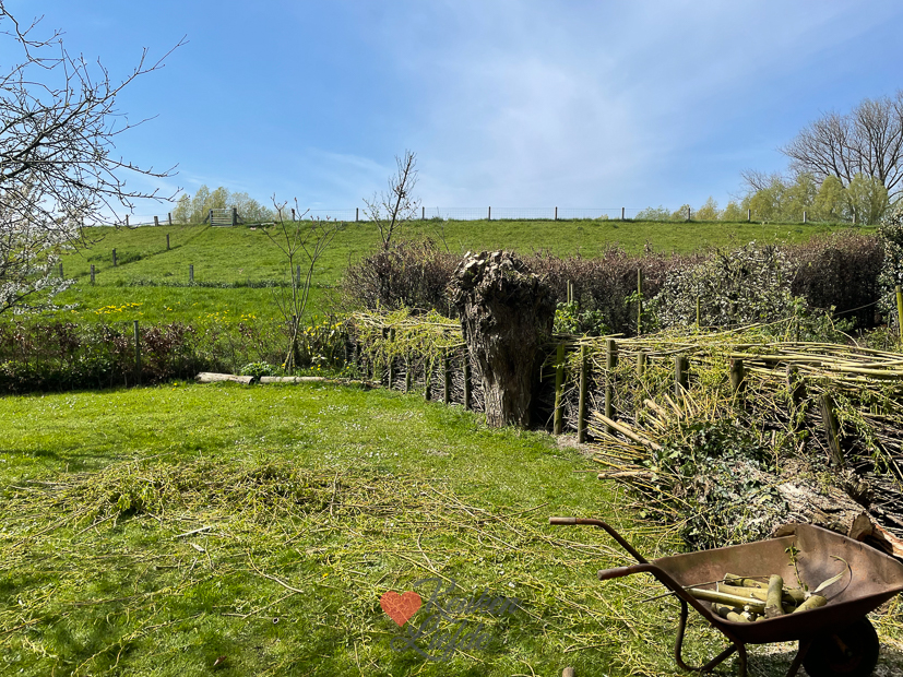 Koningsdag! Johan en ik blijven thuis vandaag en Ella gaat ’s middags met vriendinnetjes het dorp in. Ik kijk met een half oog hoe de Koninklijke familie door Rotterdam loopt en ondertussen maak ik nog een lekker en makkelijk receptje voor de website. Als ik daarmee klaar ben voeg ik me bij Johan in de tuin. Terwijl Johan de wilgen knot ga ik de voor- en zijtuin in om een begin te maken. Het is daar een jungle! Drek uit de vijver halen en heeeel veel onkruid trekken. We willen dit jaar een begin maken om de tuin onderhoudsvriendelijker te maken, want dit is echt niet bij te houden.