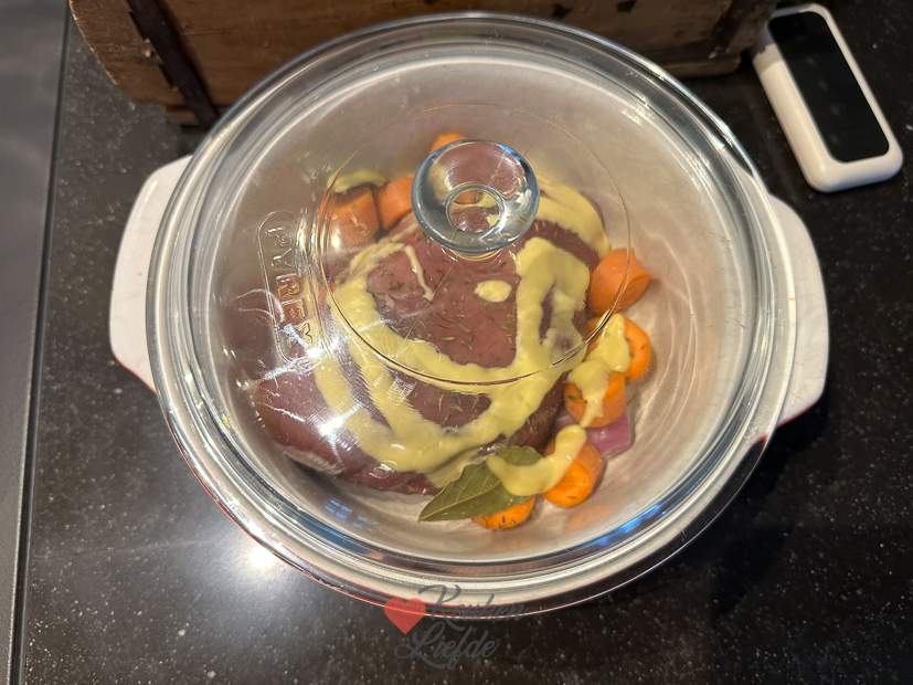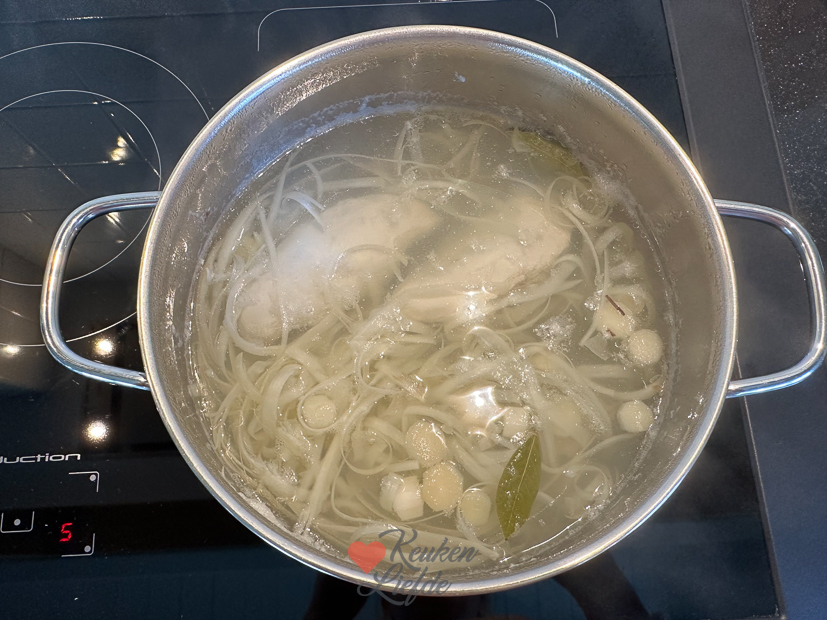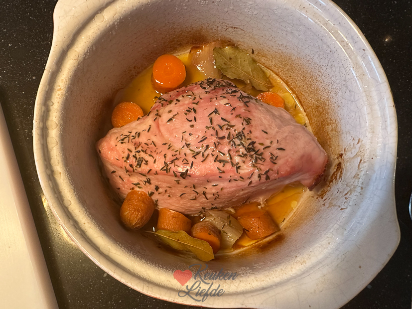 - Beenhammetje met wat sjalot, wortel, laurier en kneepje bakboter
