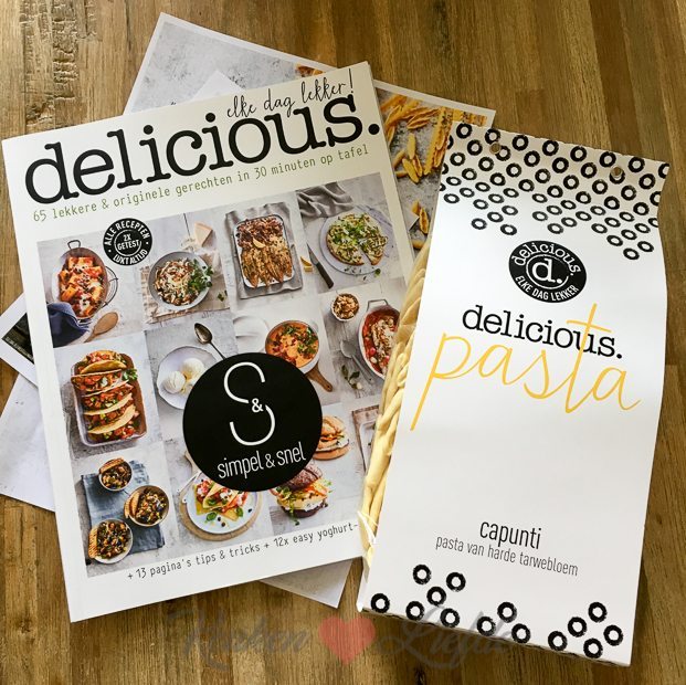 Ik ontvang een pakketje van Delicious met daarin een pak pasta (te bestellen in hun webshop) en hun magazine simpel & snel. Dankjewel Delicious!