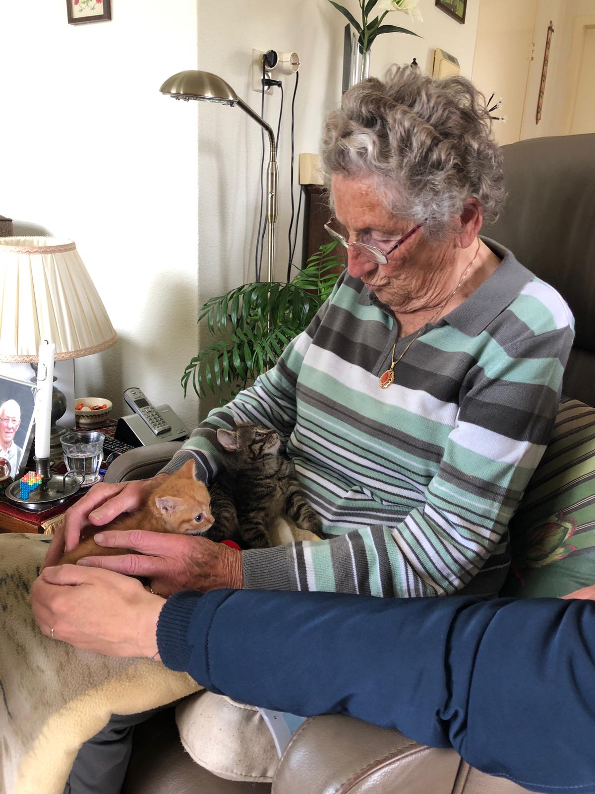 Moederdag! Naast de prachtige knutsels die Ella-Marie voor me heeft gemaakt krijg ik nog speciaal cadeau: we mogen onze twee kittens ophalen vanmiddag! Voordat we ze gaan ophalen gaan we eerst koffiedrinken bij Johan zijn ouders. Mijn schoonmoeder heeft haar befaamde aardbeienkwarktaart met lange vingers gemaakt (dit recept) en dat is genieten! Daarna gaan we de kittens ophalen! Als we de kittens hebben opgehaald rijden we nog even langs Johan zijn oma om ze te laten zien.