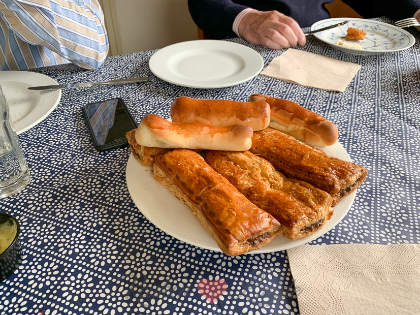 Mijn oom uit Canada (de broer van mijn moeder) is twee weken in Nederland en logeert bij mijn ouders. Als ik Ella uit school haal halen we wat lekkers bij de bakker en rijden we naar mijn ouders om met z’n allen te lunchen. Ik had saucijzenbroodjes, worstenbroodjes en appelflappen gehaald omdat ik dacht dat dat typisch Hollands was maar wat bleek, in Canada kun je dat ook gewoon kopen.