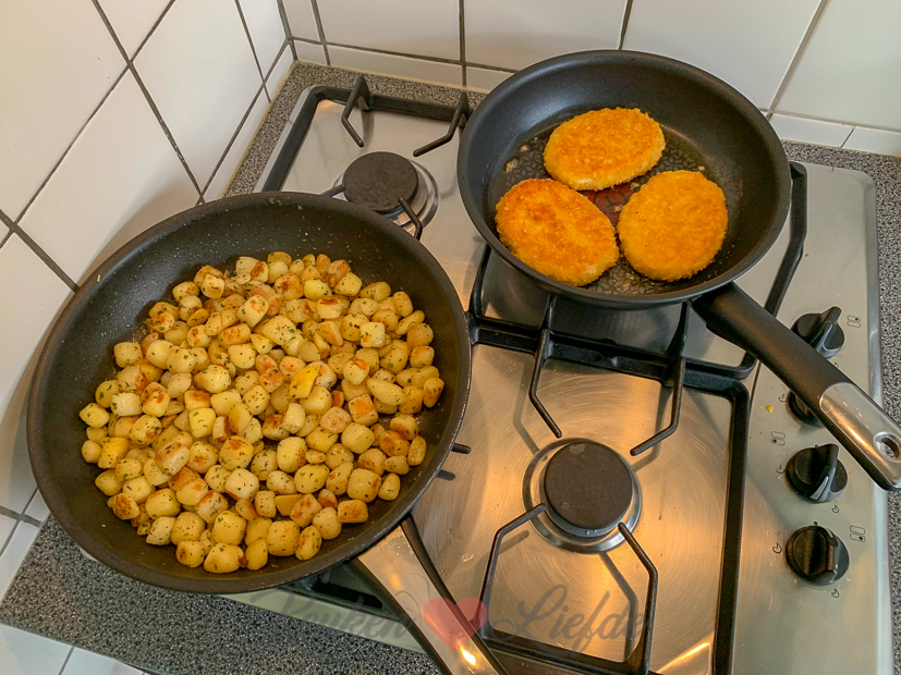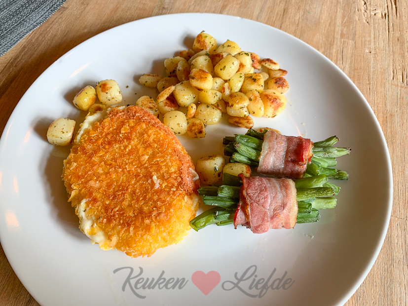 ’s Avonds had ik zin in haricots verts omwikkeld met spek. In plaats van haricots verts gebruik ik sperziebonen omdat die een stuk goedkoper zijn en zeker niet minder lekker. Ik bak er krieltjes bij en een kaasschnitzel.