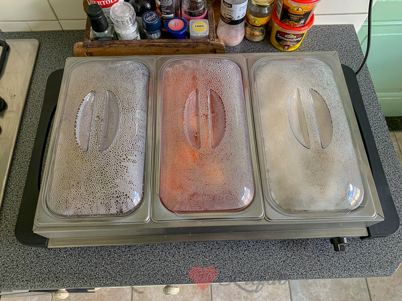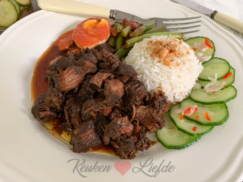 Als we ’s middags weer thuiskomen vul ik de rechaud-bakken met de eerder gemaakte Indische gerechten om rustig op te warmen. ’s Avonds eten we zelfgemaakte Indische rijsttafel met onder andere daging smoor, ajam paniki (boemboe uit een pakje), toemis boontjes, sambal goreng telor, acar ketimun en rijst. Was heerlijk!