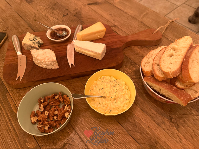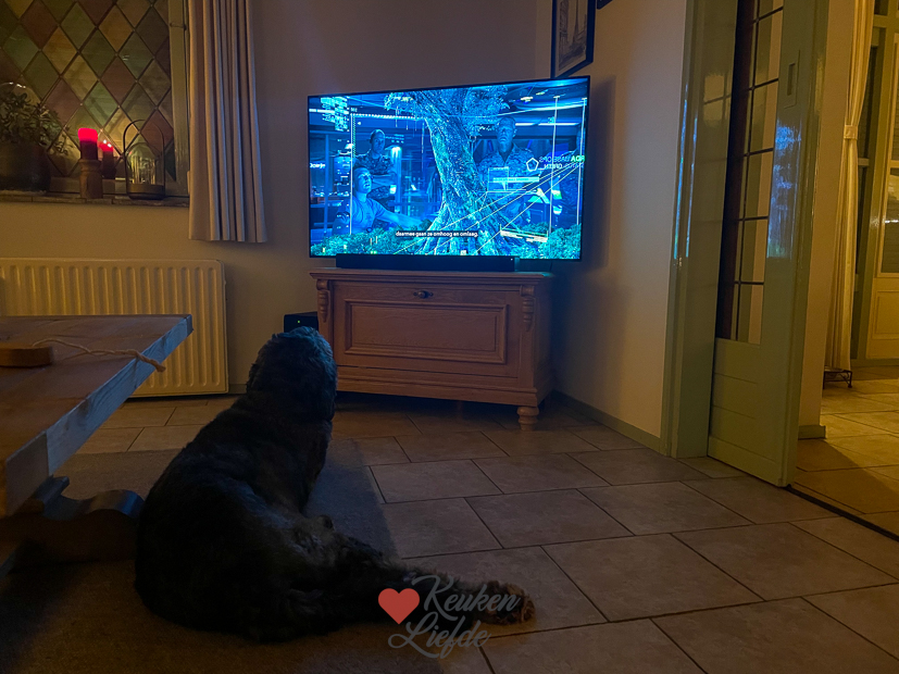 Eind van de middag zijn Ella en ik weer thuis en is Johan bekaf. Niemand heeft nog zin om eten te koken. Omdat we allemaal vol zitten van de lunch (Johan had vanmiddag kliekjes van gisteravond gegeten) besluiten we het avondeten te skippen en zetten we later op de avond kaasjes en zelfgemaakte eiersalade op tafel. Dikke prima. Ondertussen kijken we de film Avatar. Ook Nacho kijkt gezellig mee.