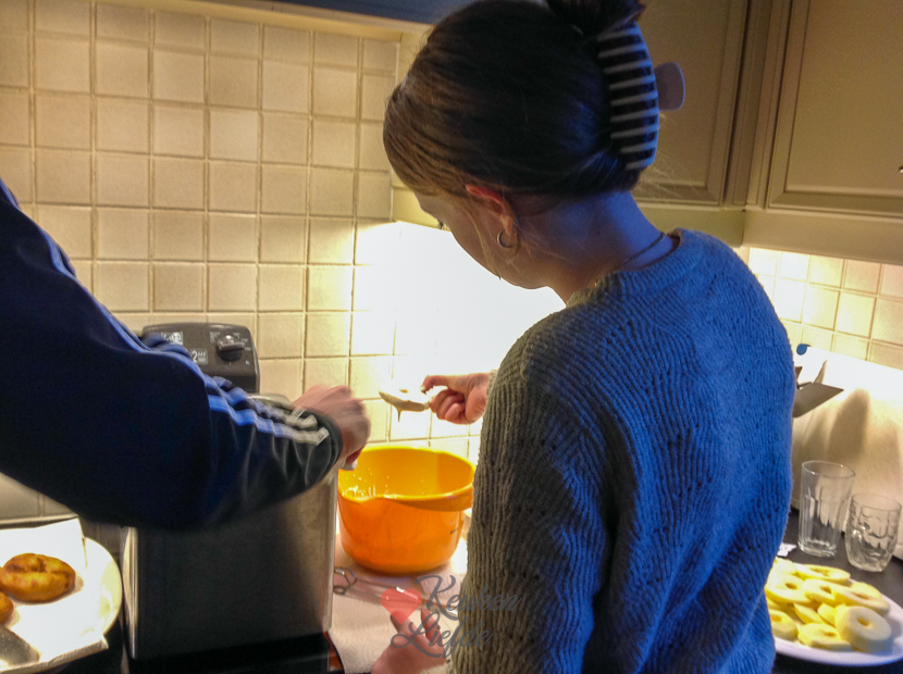 Ella en ik moeten om half negen ’s ochtends al bij de tandarts zijn voor controle. Gelukkig was alles goed. Daarna zet ik Ella af bij mijn ouders om een paar nachtjes te logeren. Weer thuis pak ik een kop cappuccino en ga ik op kantoor zitten om een artikel online te zetten. De rest van de dag rommelen Johan en ik weer wat aan. Je kent het wel, huis schoonmaken, wasjes draaien, klusjes in en rondom huis, etc. 🙄 Niet heel spannend, wel noodzakelijk. Halverwege de middag stuurt mijn moeder een paar foto’s door. Ze had Ella aan het werk gezet om appels te schillen want er werden appelbeignets gebakken. Johan en ik gaan ’s avonds samen de keuken in om het avondeten te maken. Dit keer staan er frietjes op het menu met varkenshaasshoarma (Varkenshaas in dunne plakjes snijden en lichtjes kruiden hiermee, op hoog vuur aanbakken en uit de pan halen. Dan witte deel van lente-ui, paprika en champignons bakken met wat zout en peper en op het laatst de varkenshaas en groene deel van de lente-ui erbij en even meewarmen) salade en knoflooksaus. We eten het op de bank voor de tv op terwijl we een filmpje kijken. Love it!