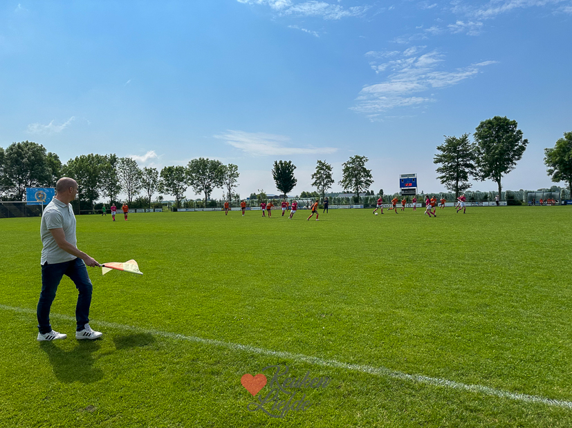 Ella heeft ’s ochtends een voetbalwedstrijd thuis. Johan moet vlaggen en ik ga even kijken. Na de wedstrijd gaan we snel naar huis om te douchen en om te kleden want ons neefje viert vanmiddag zijn verjaardag. ’s Avonds steken ze de barbecue aan en eten we gezellig mee.