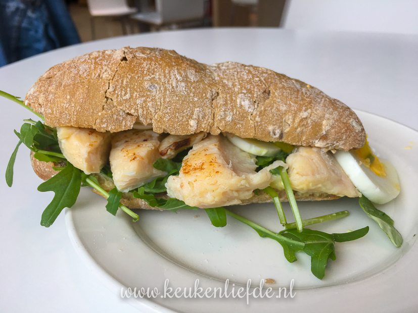 Ella-Marie en ik gaan lunchen bij de Hema en eten allebei een broodje Surinaamse kip. Mocht je hem zelf een keer willen maken, hier vind je het recept.