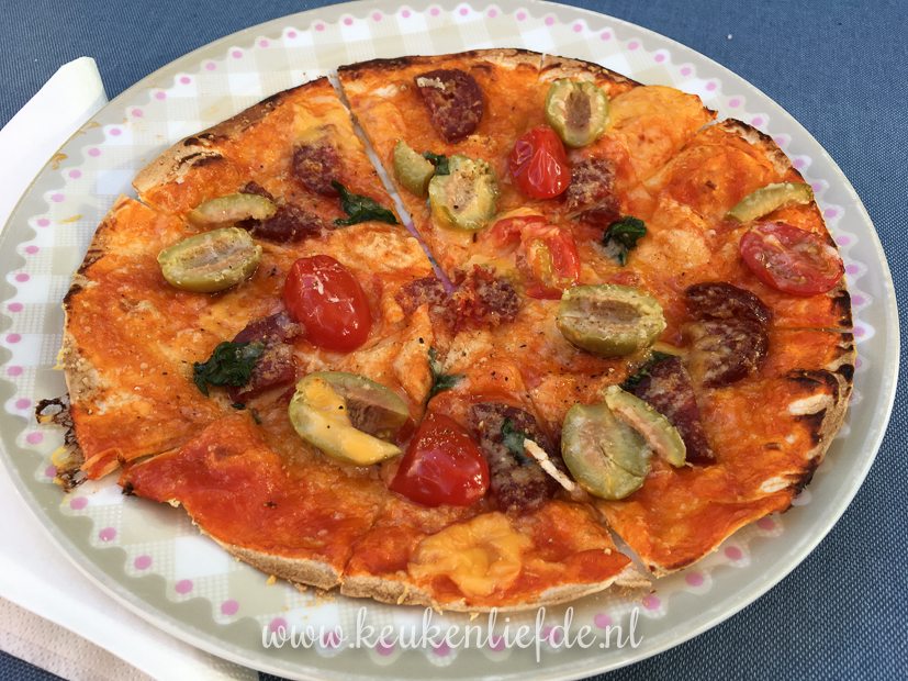 Dagje Noordwijk! We zijn ’s middags op tijd weer thuis omdat we file wilden vermijden. Eenmaal thuis stappen we op de fiets om een ijsje te eten bij Daisy’s en een boodschapje te halen. ’s Avonds eten weer pizza. We zaten te twijfelen tussen uit eten gaan, iets thuis laten bezorgen of zelf koken. Omdat ik altijd bolletjes pizzadeeg in de vriezer heb liggen besluiten we voor de laatste optie te gaan. Ook fijn voor de portemonnee. Ella-Marie maakt trouwens een wrappizza voor zichzelf.