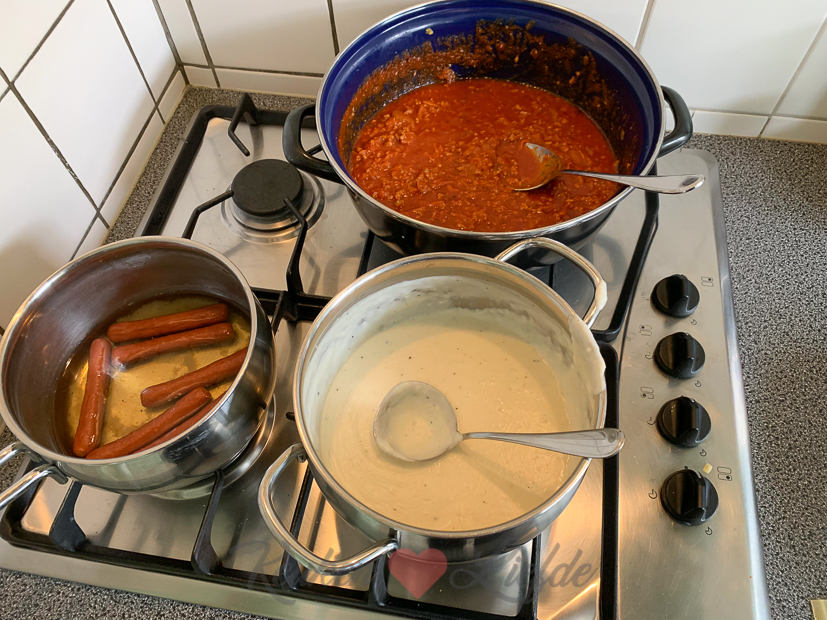 Ella-Marie heeft tegenwoordig op maandag en woensdagavond voetbaltraining en eet vanavond dus makkelijk een broodje knakworst. Johan en ik eten lasagne. Ella-Marie vindt lasagne nog steeds niet lekker. Onbegrijpelijk maar waar!