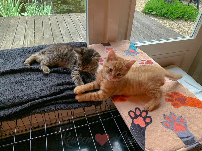 Puk en Marie kijken vanaf een afstandje toe. Zij eten brokjes vanavond. Iedereen blij.