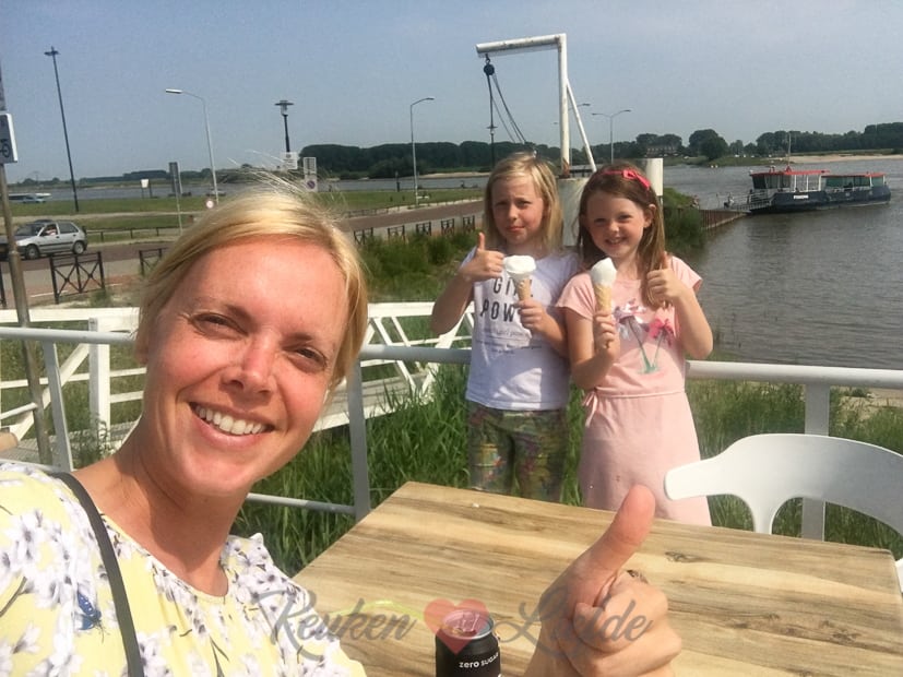 Op een afspraak bij Hans Anders na voor mijn hoorapparaat (hij wordt opnieuw afgesteld) hoef ik nergens naartoe vandaag. Ik probeer zoveel mogelijk content te schrijven voor KeukenLiefde en het kookboek. ’s Middags is het bloedheet en ga ik samen met Ella-Marie en haar vriendinnetje een ijsje eten.
