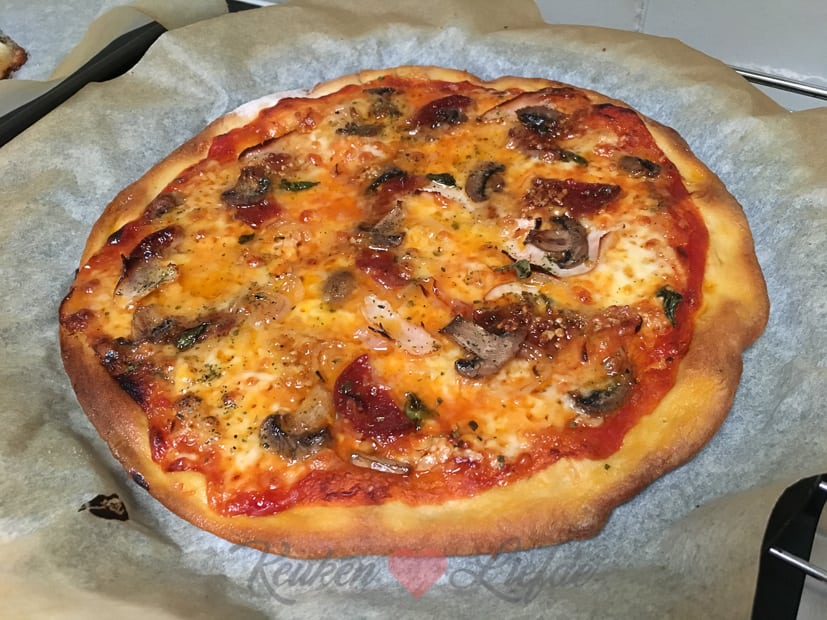 ’s Avonds eten we PIZZA! 🙂 Met mijn zelfgemaakte pizzadeeg natuurlijk.