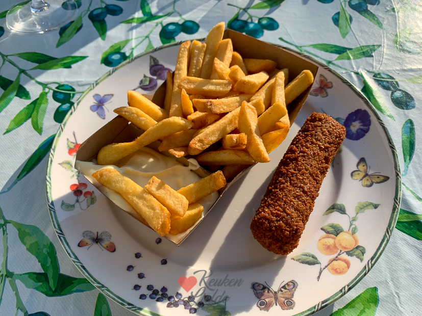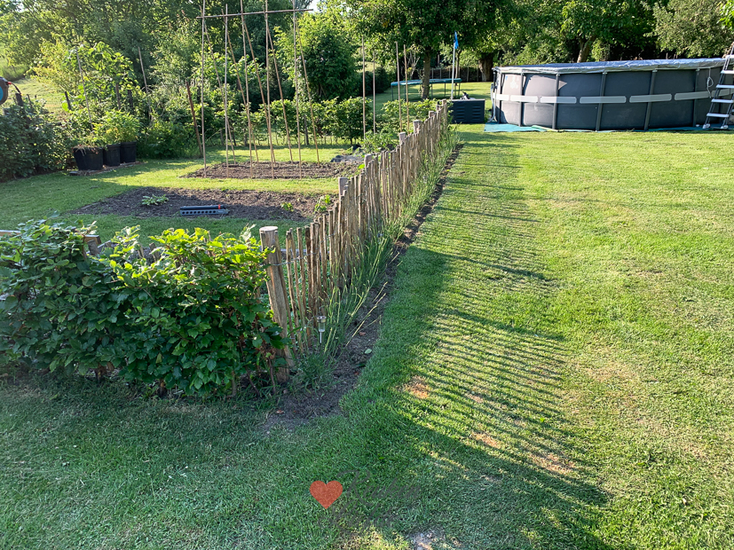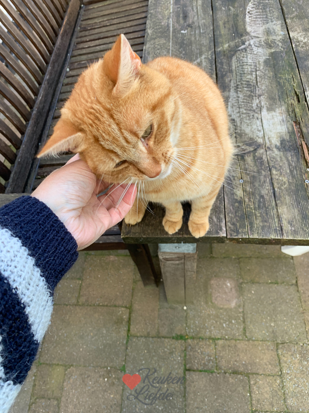 Als ik ’s ochtends in de keuken sta om brood te smeren en uit het raam kijk, zitten er twee katten naar binnen te staren. Puk en Marie kunnen middels de chip in hun nek zelf door het kattenluikje de schuur in en uit en slapen en eten daar. Als het buiten koud is of de hele dag regent komen ze graag naar binnen, maar vandaag is het mooi weer en laat ik ze buiten. Ik sta vandaag weer in de keuken om een paar recepten voor de website te maken en dan wil ik zowieso geen katten binnen. Ze zijn niet te vertrouwen… Aan het eind van de middag geniet ik buiten nog even van het zonnetje met de nieuwe Wonen Landelijke Stijl. Ondanks mijn kookdag heb ik ’s avonds niks in huis voor het avondeten en omdat ik geen zin meer heb om boodschappen te doen en weer te koken, halen we een frietje. Ik neem bijna altijd hetzelfde: een klein frietje met en een kroket. Johan neemt bijna altijd een frietje catamaran en Ella neemt altijd een kleine frietje met en varieert met de snacks. Dit keer nam ze een Mexicano. Het is een prachtige avond dus na het eten wordt er nog even in de tuin gewerkt. De moestuin ligt er netjes bij. Net zoals andere jaren hebben we sla, radijs, pastinaak (voor het eerst), pompoen, sperziebonen, rabarbar, rucola, tomaten en courgettes. Alleen het komkommerplantje dat we hadden gepoot is overleden, de rest groeit als kool.
