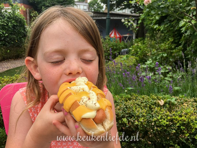 ’s Avonds eten we weer soep. Ella-Marie maakt haar befaamde tomatensoep. Met een broodje hotdog à la papa.