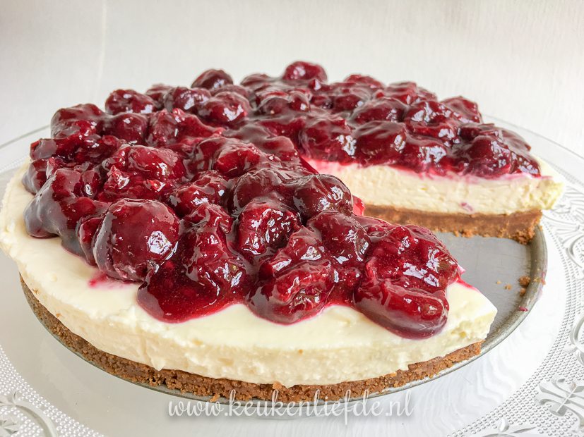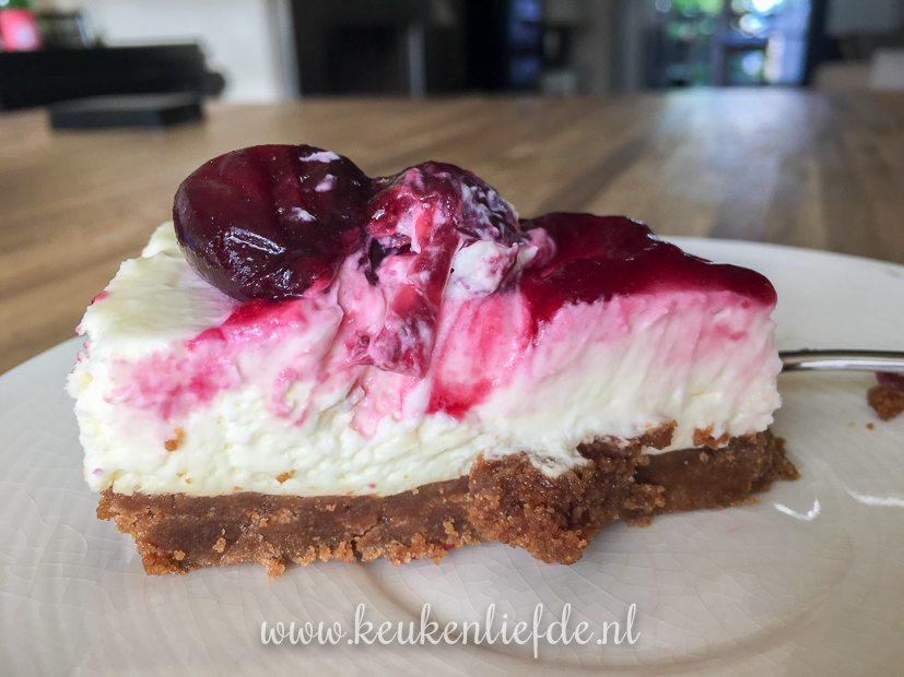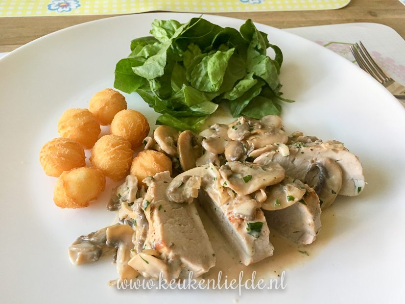 Ik maak monchoutaart met zelfgemaakte kersencompote (recept volgt) en ’s avonds eten we een varkenshaasje met champignonroomsaus, aardappelbolletjes en sla. Lekker!