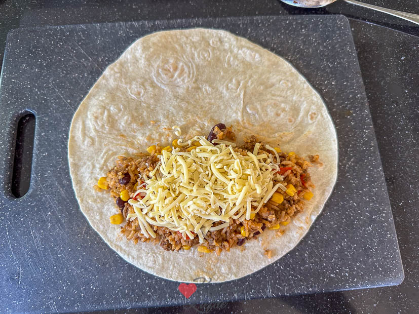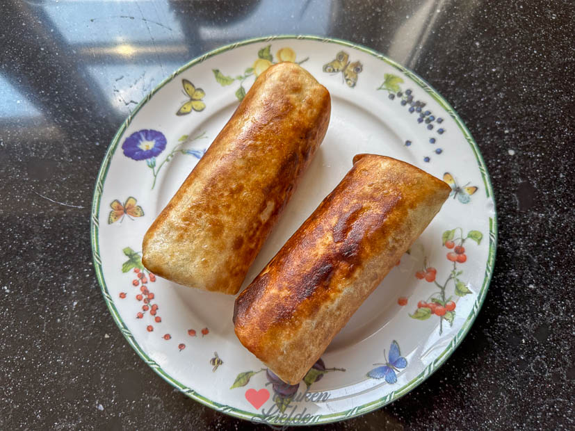 Daarna ging ik naar binnen om een nieuw recept te maken, namelijk burrito’s met gehakt en rijst. De rijst kookte ik niet apart met gaarde ik in de pan met het gehakt. Supermakkelijk en lekker. Ik kon 12 burrito’s maken van de vulling en vroor de helft van de burrito’s in. Altijd handig als ik geen zin heb om te koken.