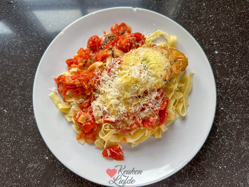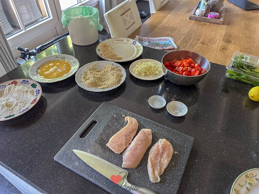 Vrijdag was Johan lekker vrij en rommelde we samen wat aan. In de ochtend zaten we samen op kantoor, daarna ging ik de keuken in om kip parmezaan te maken.