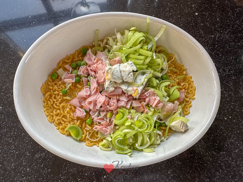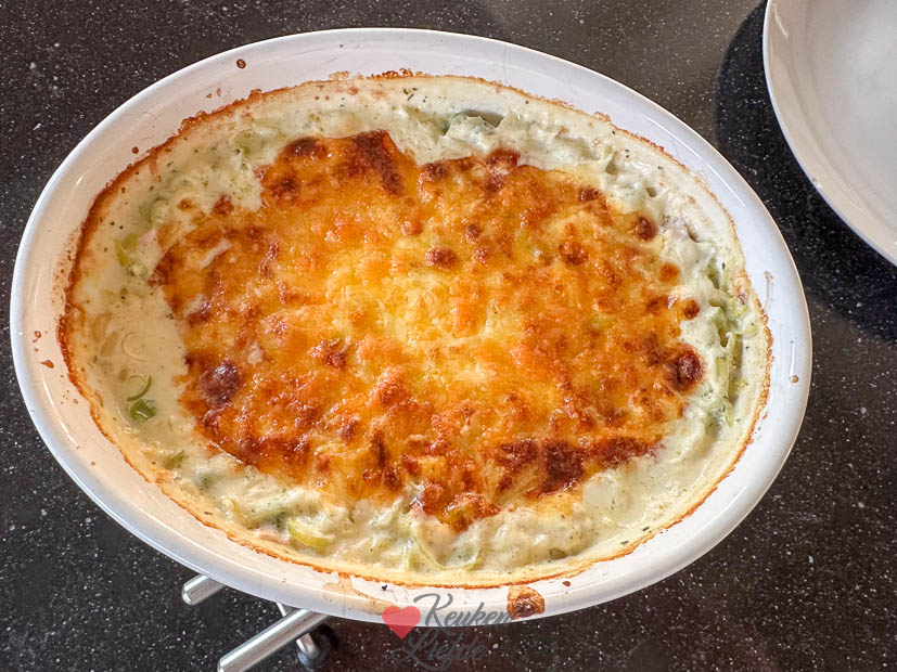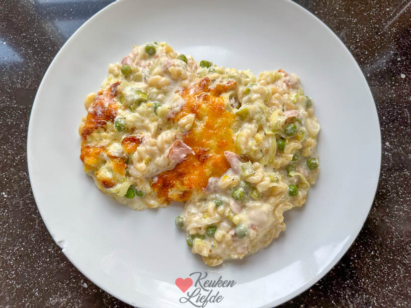 Maandag was weer een normale werk- en schooldag voor iedereen. Hoewel, niet helemaal. Ella-Marie heeft deze week namelijk toetsweek. Het is heerlijk weer dus eind van de middag maak ik de loungeset schoon, gooi de kussens erin en zet de parasol op. Tijd om te relaxen. Johan eet vanavond het restje chinees op dat over is van gisteren, voor Ella maak ik op verzoek een salade met geitenkaas (haar favoriete maaltijd op dit moment) en ik maak een makkelijke ovenpasta voor mezelf als ik rond zeven uur ’s avonds naar binnen ga. Dit recept (dat ik hoognodig even een foto update moet geven 🫣). Ik gebruikte een zakje 4-kazensausmix van Knorr. En ik gebruikte 115 g macaroni omdat het voor mij alleen was. Zoals je ziet op de foto heb je dan redelijk veel saus in verhouding met de pasta maar daar houd ik van. 😀 Wil je hem iets dikker dan kun iets meer pasta toevoegen. In het recept staat 120 gram maar je zou er denk ik ook 125 – 130 gram van kunnen maken. Het is wel belangrijk dat de pasta onder het vocht staat anders gaart hij niet. Voorbereiding kost je 10 minuten (zonder afwas!), daarna 30 minuten in de oven en daarna gruwelijk genieten. Ik kreeg trouwens niet alles op. Het is behoorlijk machtig.