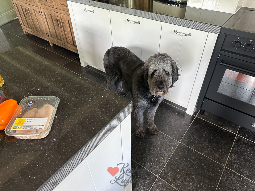 Ook vandaag zijn Nacho en ik in de keuken te vinden. Ik maak onder andere een supersimpel en lekker EK-hapje: frikandel speciaal hapjes! Voor het avondeten maakte ik een grote pan curry met de gele currypaste en kokosmelk die ik gisteren van Fairtrade kreeg.