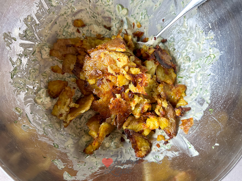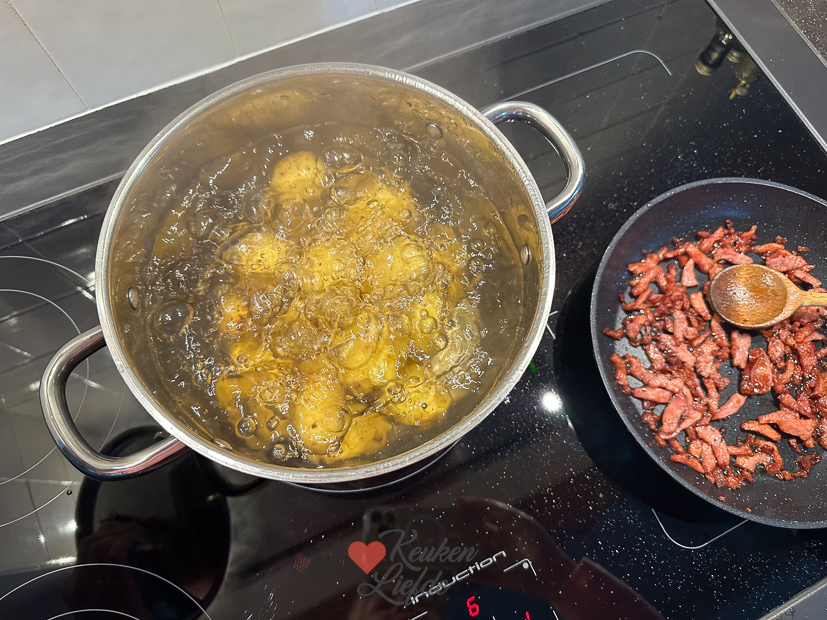 Johan is vrij vandaag. Eind van de ochtend hebben we thuis een afspraak met een bedrijf dat warmtepompen installeert. ’s Middags maak ik weer een lekker receptje voor Keukenliefde dat al een tijdje op mijn planning stond: crispy potato salad. Je ziet hem momenteel overal op social media voorbijkomen en ik was wel benieuwd.