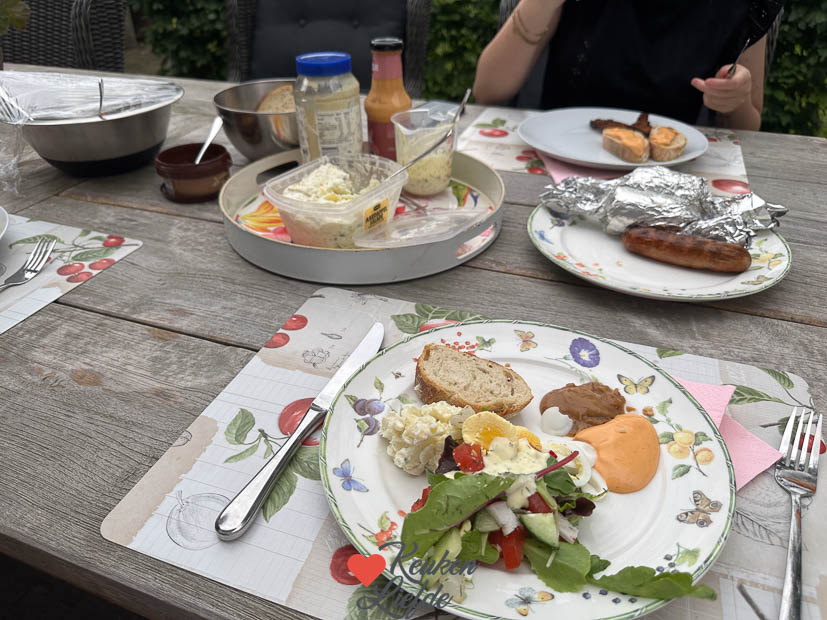 Nacho moet om negen uur ’s ochtends bij de trimmer zijn, Althans dat dacht ik. Maar als we daar aan komen kijken ze me vreemd aan. Ik heb me vergist want de afspraak is pas om twaalf uur. Kak! Zoveel chaos in mijn hoofd de laatste weken. Toe aan vakantie! 🤯 Afijn, dan maar weer terug naar huis en een paar uurtjes aan het werk. Een paar uur later breng ik Nacho voor de tweede keer naar de trimmer en nu mag hij gelukkig blijven. 😉 Halverwege de middag kan ik hem weer ophalen en ziet hij eruit als een heertje. ’s Avonds steekt Johan de barbecue aan voor een paar stukjes vlees met stokbrood, salade en aardappelsalade.
