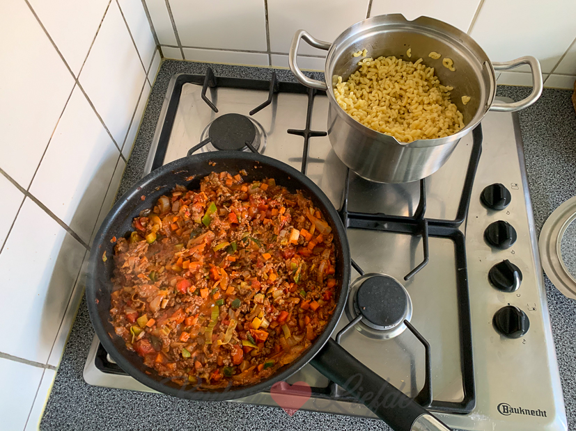 Ik werk ’s ochtends tot de lunch op kantoor. ’s Middags ga ik de keuken in om te koken. Ik probeer elke dag een nieuw recept te maken voor ons tweede kookboek vol met heerlijke familiegerechten. Dat vind ik fijner en relaxer dan een kookdag waarop ik meerdere recepten moet maken en fotograferen. Nu sta ik ’s middags heel ontspannen in de keuken en heb ik na het koken alle tijd om een mooie foto te maken. Extra voordeel: het avondeten hoeven we ’s avonds alleen maar even op te warmen!