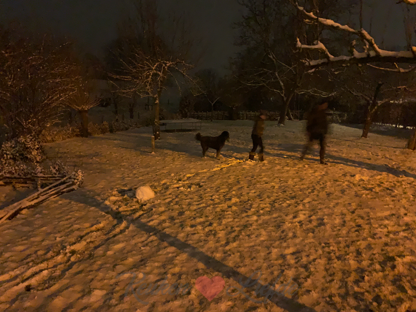 ’s Avonds keken we een filmpje die tijdelijk werd onderbroken door sneeuwpret in de tuin.