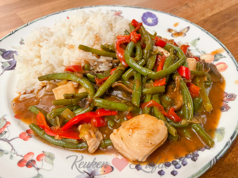 Ella heeft ’s avonds voor het eerst sinds lange tijd weer scouting en eet wat eerder. Op verzoek krijgt ze een gebakken kipschnitzel belegd met brie en een salade. Johan en ik eten wat later een jachtsauspannetje (zakje) met gekookte rijst. Nadat ik de saus nog verder op smaak had gebracht (vond hem erg flauw) vonden we het een smakelijke hap. Volgens Johan moest ik dit recept nog een keer maken maar dan zonder zakje om te delen op KL Was ik het mee eens en dus zie je hem later in dit kijkje nog een keer voorbij komen maar dan zelfgemaakt. Het recept ga ik binnenkort met je delen. Was erg lekker.