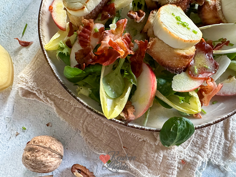 - Iets met sla, witlof, appel, spek en geitenkaas… Mmmm!