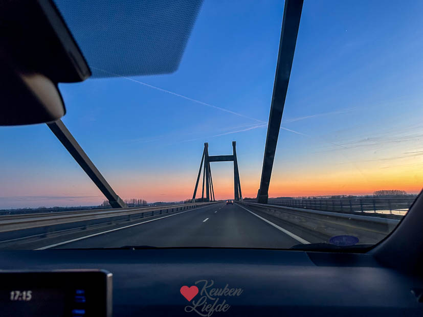 Als we over de waalbrug weer terug naar huis rijden zie ik hoe hoog het water staat. De gouden gloed van de ondergaande zon aan de horizon zorgde voor een picture perfect. Thuis hoefde ik de butter chicken alleen maar weer even op te warmen en konden we lekker eten.