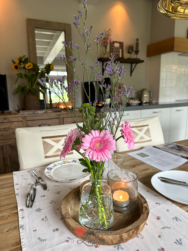 Vandaag zijn we druk met de voorbereiding voor de verjaardag van Ella-Marie. Ze is maandag jarig maar we vieren het morgen alvast met familie. We hebben bijna elk jaar het geluk dat we het buiten kunnen vieren maar dit jaar is de weersvoorspelling heel slecht en besluiten we het binnen te doen. We maken het huis schoon, hangen slingers op, zetten overal verse bloemen neer, doen boodschappen en op verzoek van het bijna jarige jetje maak ik een carrot cake. Dit recept. De lekkerste die je ooit proefde! Hij zakt bij mij na het bakken altijd in (heb al verschillende ovenstanden en tijden uitgeprobeerd maar zonder succes), maar omdat er een roomkaastopping overheen gaat zie je daar niks meer van. 😉 ’s Avonds staken we de Big Green Egg weer aan voor een lekkere maaltijd. Van een lezer kreeg ik de tip dat krieltjes van de EGG nog lekkerder zijn dan uit de oven dus we namen de proef 0p de som. Helemaal waar. De krieltjes waren vanbinnen boterzacht (bijna puree) en het schilletje met subtiele houtskoolsmaak gaf ze een lekkere bite en smaak. Hemels.