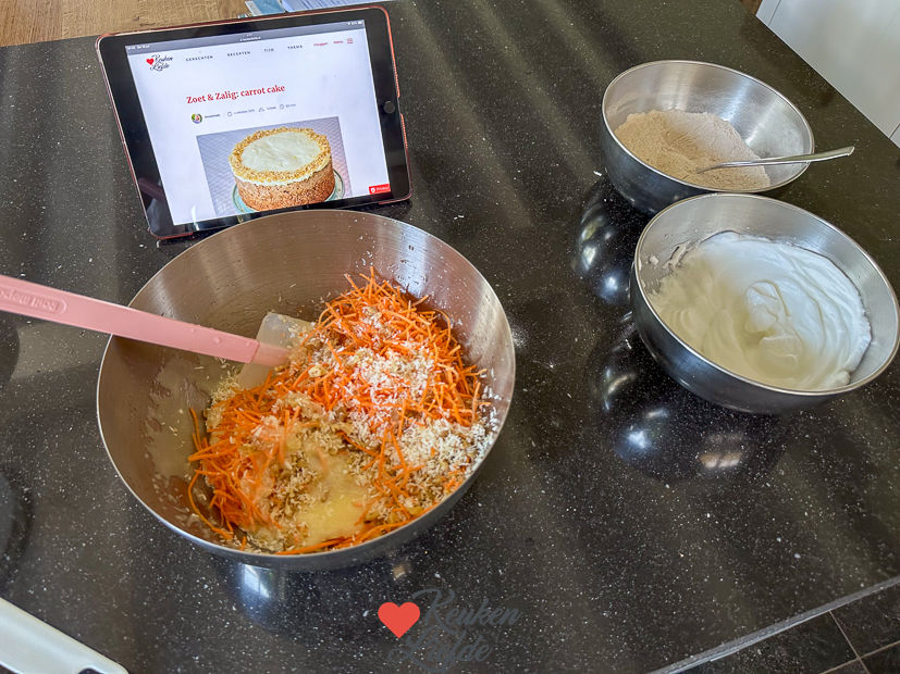 De rest van de middag vermaak ik me met de voorbereidingen voor Ella’s verjaardagsfeest aankomende zaterdag (volgende week woensdag is ze echt jarig). Ik bak alvast de carrot cake (samen met de kwarktaart van mijn schoonmoeder de favoriet van Ella) — en maak het huis en zwembad schoon. Voor het avondeten maak ik weer een agv’tje want die boodschappen had ik nog in huis.