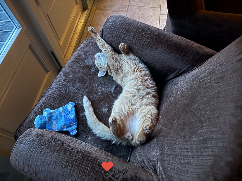 Zoals elke zomer gaat er bij ons altijd wel iets kapot. Vandaag houdt de zwembadpomp ermee op. Jawel, net nu er na al die regen een paar tropische zomerdagen op komst zijn. 🙄Mijn schoonvader komt ’s avonds even langs om het koord van het rolluik te vervangen (die was afgebroken) en kijkt meteen of de pomp misschien nog te redden is, maar helaas. We moeten toch echt een nieuwe bestellen. Voor het avondeten gooien we een kant-en-klare Margherita pizza in de oven die we zelf nog extra beleggen. Ik zag ’s avonds ook dat het niet zo goed ging met Puk de rode kater. Hij hinkte met zijn achterpoot en er zat totaal geen leven in. In de zomer zijn onze katten meestal buiten (ze kunnen zelf de schuur in en uit waar altijd eten voor ze staat en genoeg zachte ligplekjes zijn), maar nu besluit ik om Puk toch even binnen te houden.