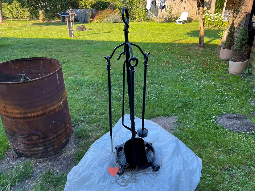 - Oude haardstel die verroest was ziet er weer uit als nieuw nadat hij zwart is gespoten