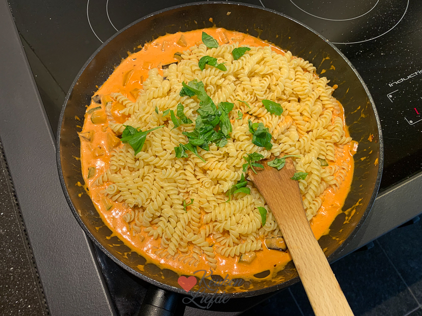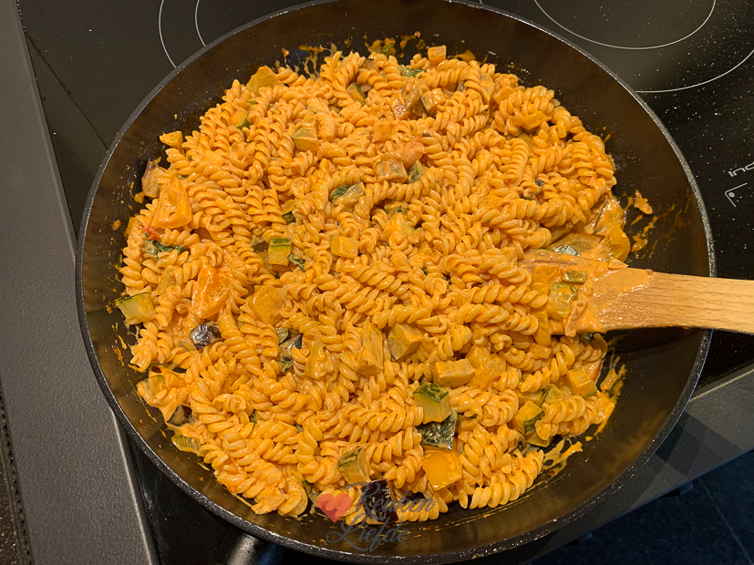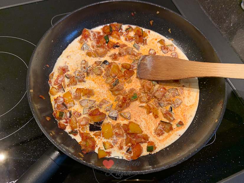 - Tomatenroomsaus met aubergine, courgette en paprika