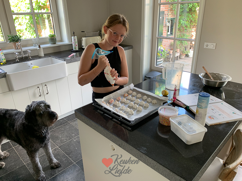 Terwijl Johan wat klusjes in huis doet en ik op kantoor een artikel online zet, staat mini me in de keuken om gekleurde meringue schuimpjes te maken uit het kinderbakboek van Laura’s Bakery. ’s Middags brengen we Ella naar mijn ouders om een paar nachtjes te logeren. Als Johan en ik weer thuis komen staat er een pakketje op de stoep met een leuk bordspel: Geef een Hint. Dit gaan we snel eens even uitproberen. Lijkt me leuk! Voor het avondeten gaan Johan en ik samen aan de slag. Op het menu staat varkenshaas in champignonroomsaus met sperziebonen (uit de moestuin) en röstirondjes uit de oven.