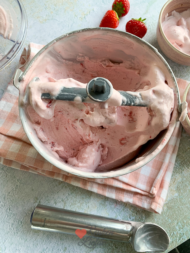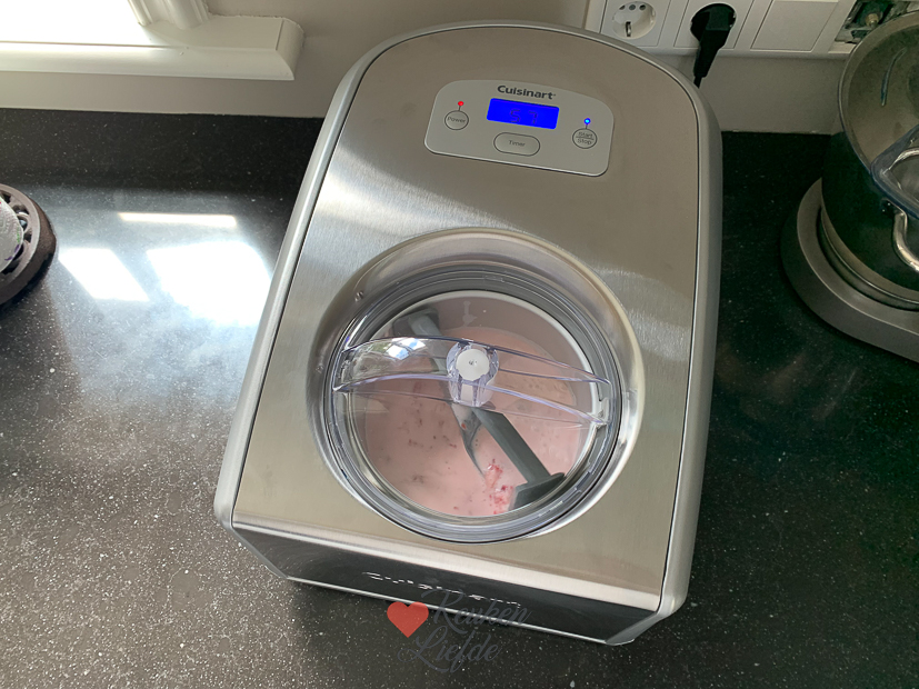 - 40 minuten later is het aardbeienroomijs klaar. Recept staat al op KL.