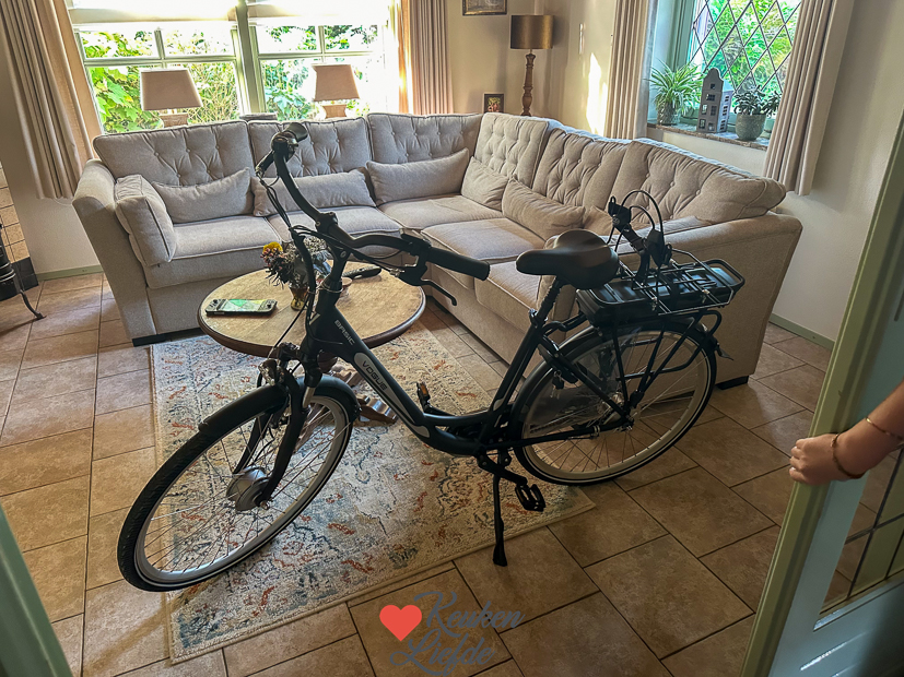 24 juli. Een prachtige dag want ons kleine meisje wordt alweer 14 jaar! 🥳 Na het ontbijt en uitpakken van de cadeautjes lokken we haar met een smoesje naar de woonkamer waar haar elektrische fiets staat te wachten. We hadden een hele grote strik op internet besteld om erop te zetten maar die was jammer genoeg nog niet binnengekomen. “Zie je wel, ik wist het!”, riep ze uit. Ze moet na de zomervakantie elke dag bijna 30 km fietsen naar school dus dan is een elektrische fiets geen overbodige luxe. Ze is er heel blij mee. Daarna stappen we in de auto voor een dagje Amsterdam.