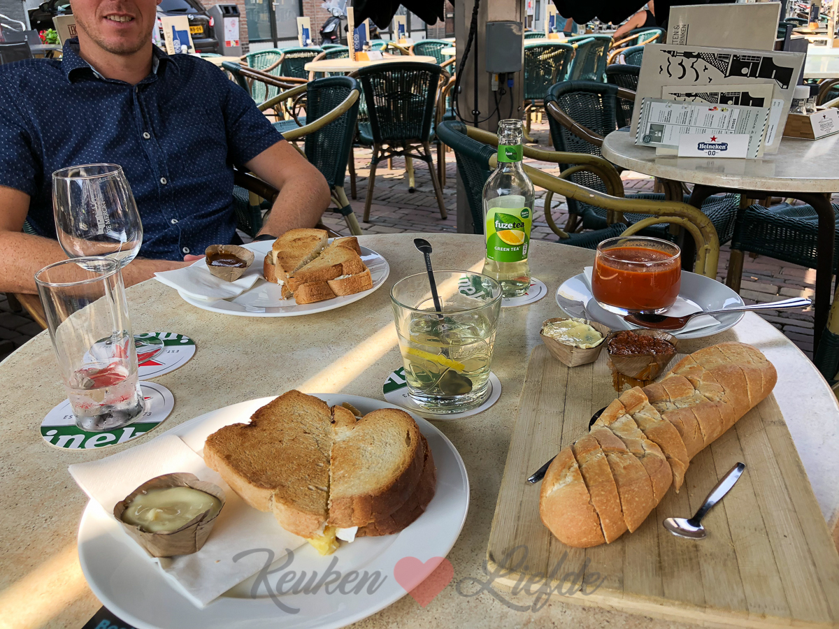 Ella is elke woensdag om twaalf uur uit school. Johan en ik halen haar op en fietsen over de dijk naar het voetpondje in Wamel. Daar varen we over naar Tiel. We moeten het een en ander halen in de stad maar eerst gaan we lekker lunchen bij Restaurant De Merckt.