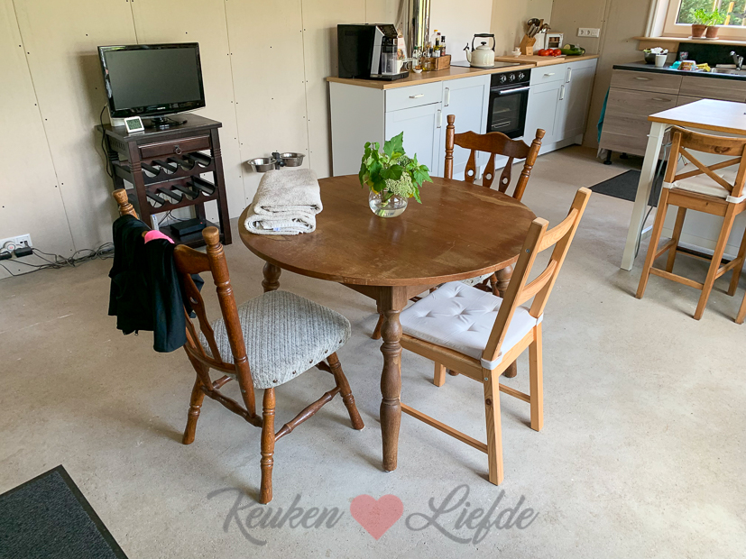 Als we weer thuis zijn, maak ik een paar lekkere vishapjes die we aan onze ‘nieuwe’ tafel opeten. Tegelvloer en muren zullen waarschijnlijk pas einde van dit jaar gelegd en afgewerkt worden dus we zitten er voorlopig nog even zo bij…