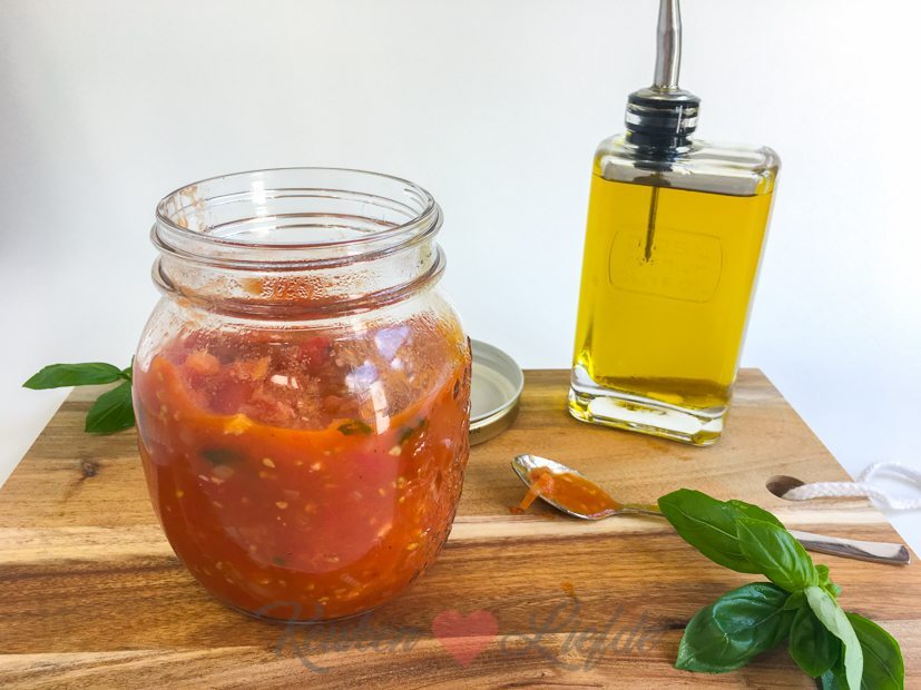 Als lunch eet ik een bagel met zelfgemaakte bieslookroomkaas en gerookte zalm (recept deel ik binnenkort en daarna maak ik een flinke pot tomatensaus van verse tomaten. Het recept en de kookvideo deelde ik afgelopen zaterdag met je.