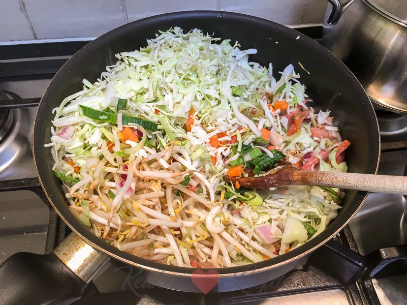 - De rijst gaat door de groenten