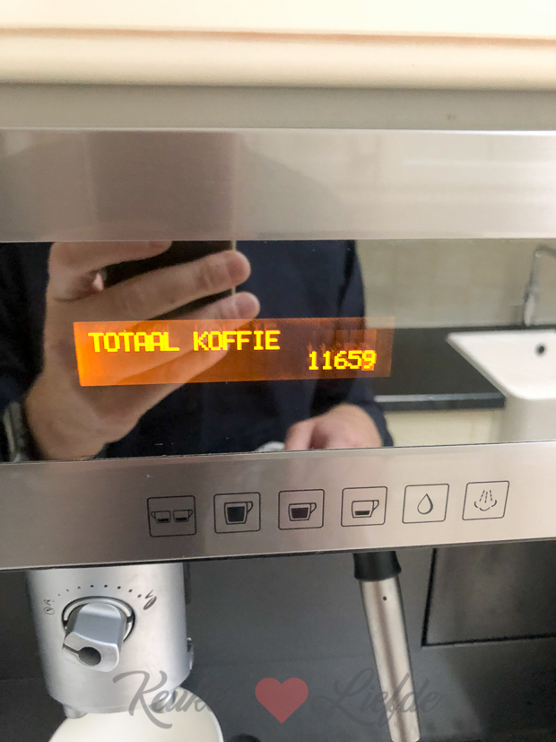 ’s Middags rijden we naar ons huis in Tiel voor een laatste inspectie door het huis met de nieuwe eigenaars. Johan maakt nog snel even een foto van het totaal aantal door ons gedronken kopjes koffie. Dat zijn er best veel haha!