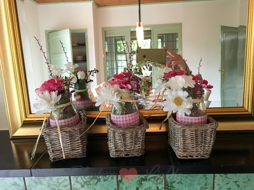 Als we weer thuis zijn duikt Ella-Marie de tuin in en knipt ze bloemen voor deze schattige vaasjes. Na de foto neemt ze ze mee naar boven en zet ze op haar slaapkamer.