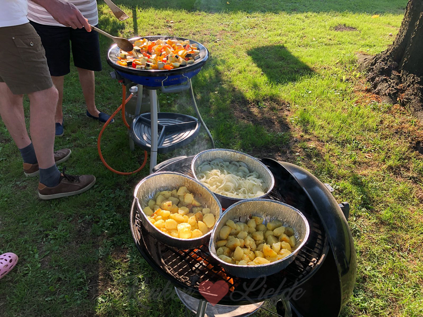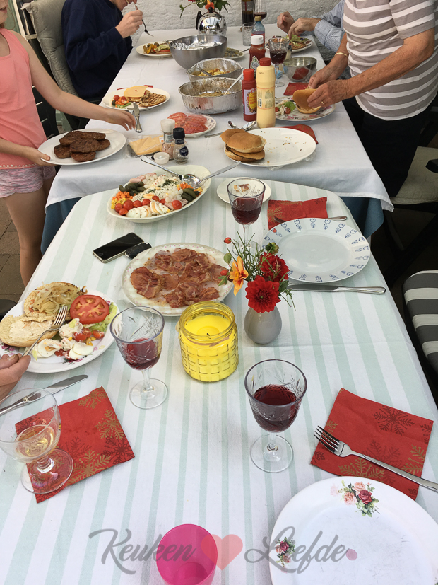 Na het ontbijt maakt Johan een huzarensalade en kookt alvast wat aardappels. Vanavond komen mijn ouders en broers eten en steken we de barbecue aan.