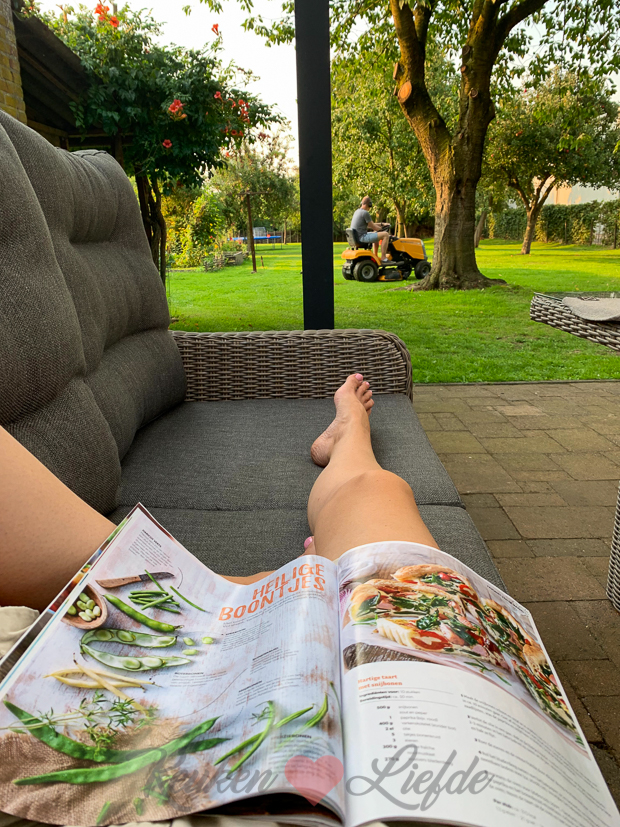 Voordat ik eten ga koken blader ik de nieuwe Koken & Genieten door. Ondertussen maait Johan het gras. 🙂