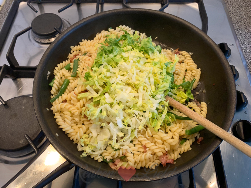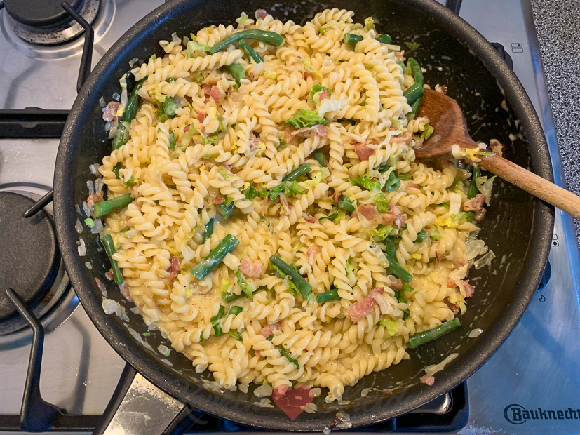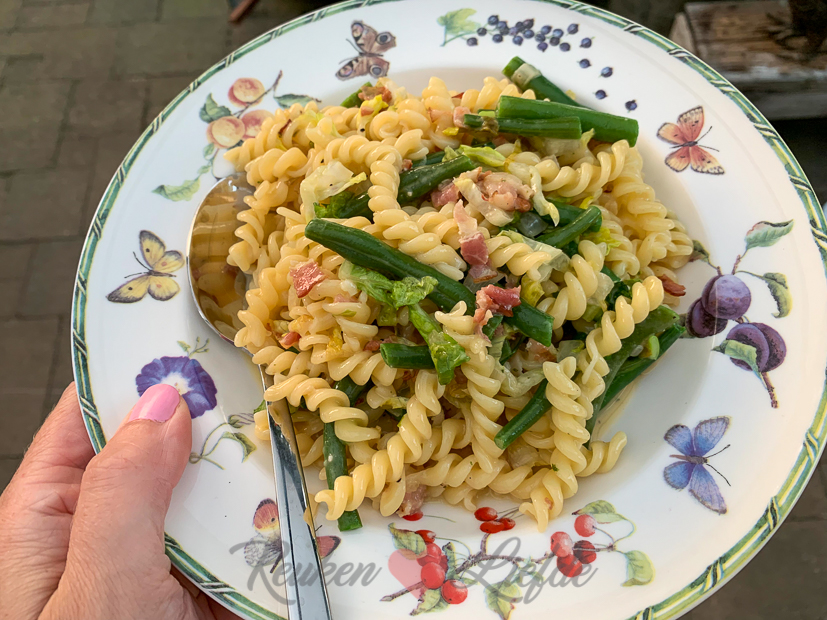 Vandaag op het menu: pasta carbonara met sperziebonen en sla!