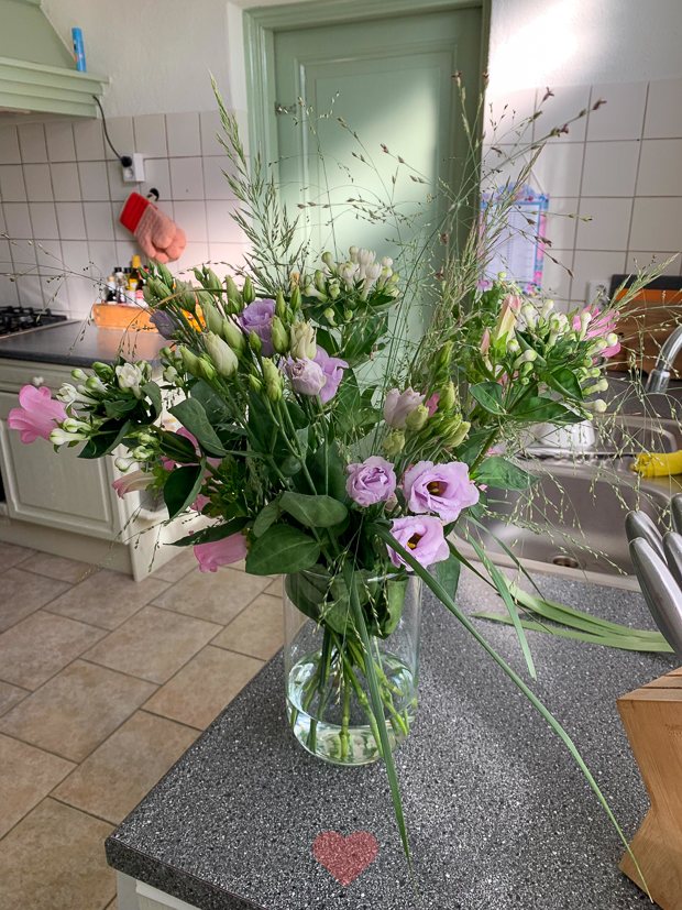 Van de buren had ik gisteravond deze prachtige bos bloemen gekregen. De buurvrouw heeft dit boeket zelf samengesteld want ze heeft haar eigen bloemenatelier. Heerlijk, verse bloemen in huis! Ik word daar echt gelukkig van.