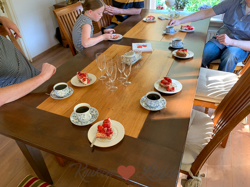 Mijn ouders zijn vandaag 50 jaar getrouwd en Johan en Ella-Marie hebben daar allebei verlof voor gekregen. Halverwege de ochtend rijden we naar mijn ouders om koffie te drinken met gebak.