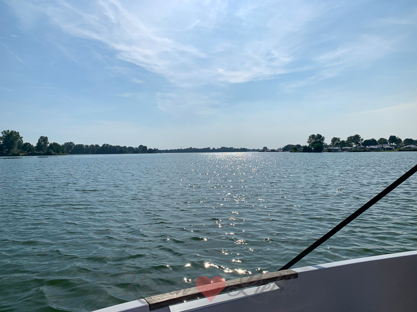 Daarna hebben we een verrassing voor ze in petto en brengen we ze zonder iets te vertellen naar recreatiegebied de Gouden Ham. Daar hebben we voor de middag een grote sloep gehuurd om te varen. Koelbox mee met hapjes en drankjes en genieten maar! Het was prachtig weer en omdat er blauwalg ontdekt was in het water hadden we de hele plas bijna voor onszelf alleen. 🙂